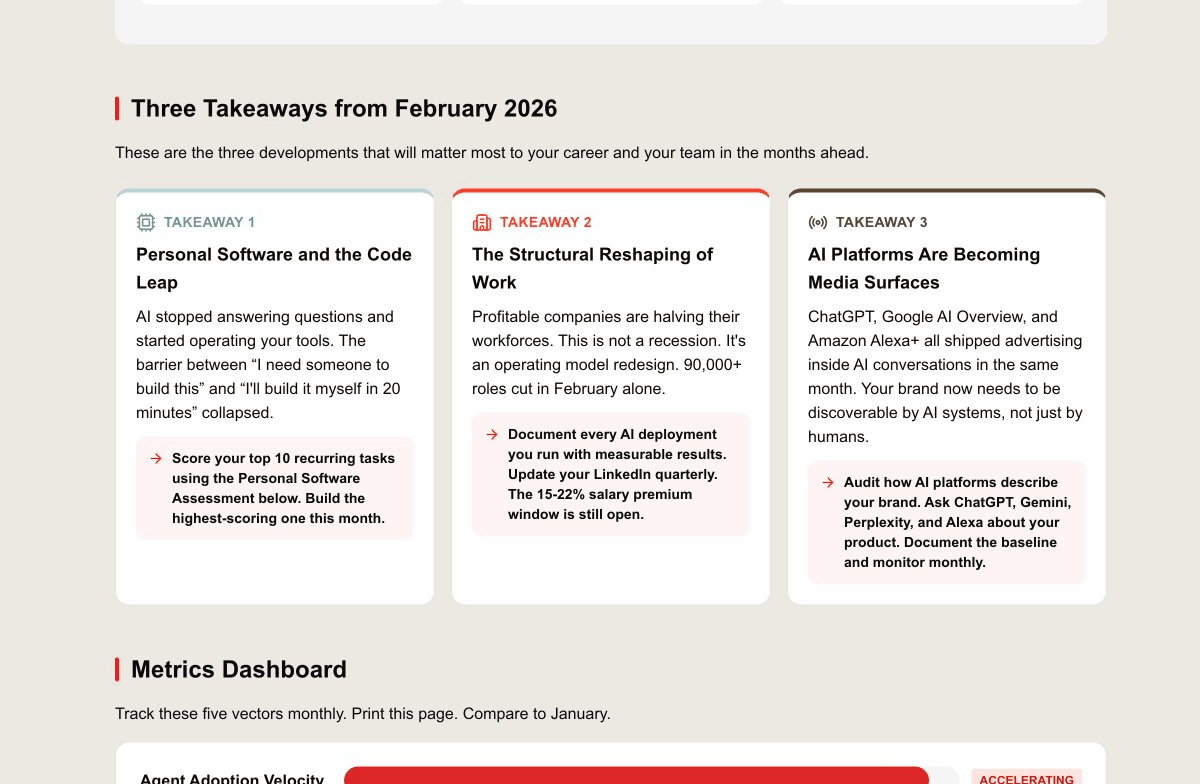 Data-driven, interactive reports that go beyond headlines. Every month, we break down what actually changed in AI marketing — with charts, frameworks, and action items.
